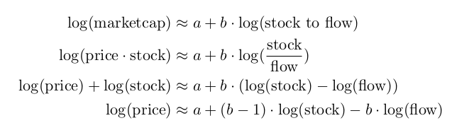 In other words, if PlanB had attempted to model (the log of) the price using a linear function of stock to flow instead of the market cap, the stock would not appear on both sides of the equation, and hence the supposed tautology would disappear. In other words: in order to get a price forecast based on stock-to-flow, we could either